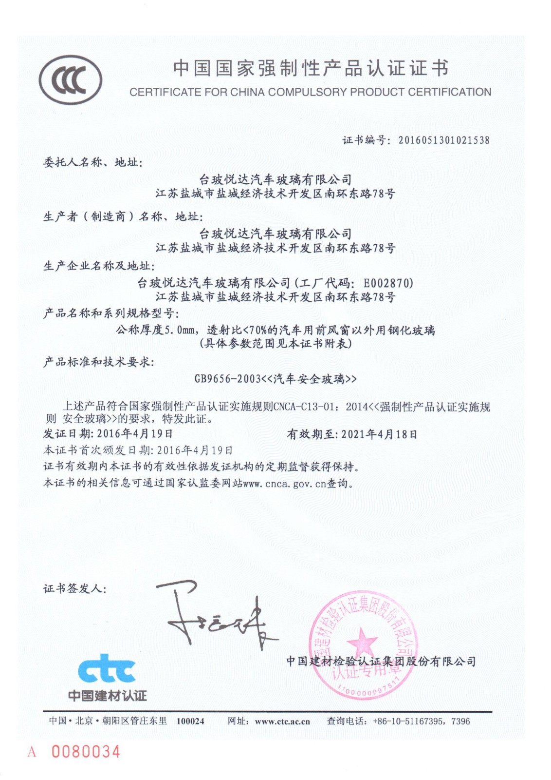 台玻悦达汽车玻璃