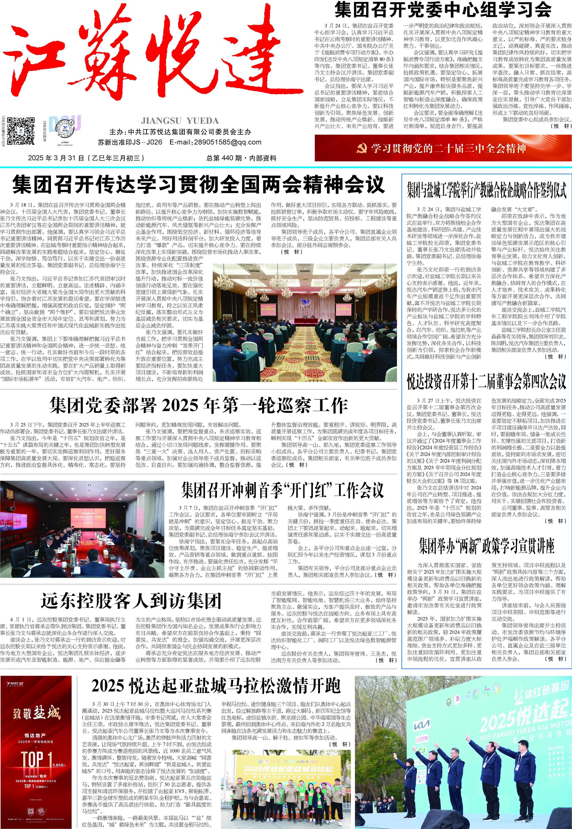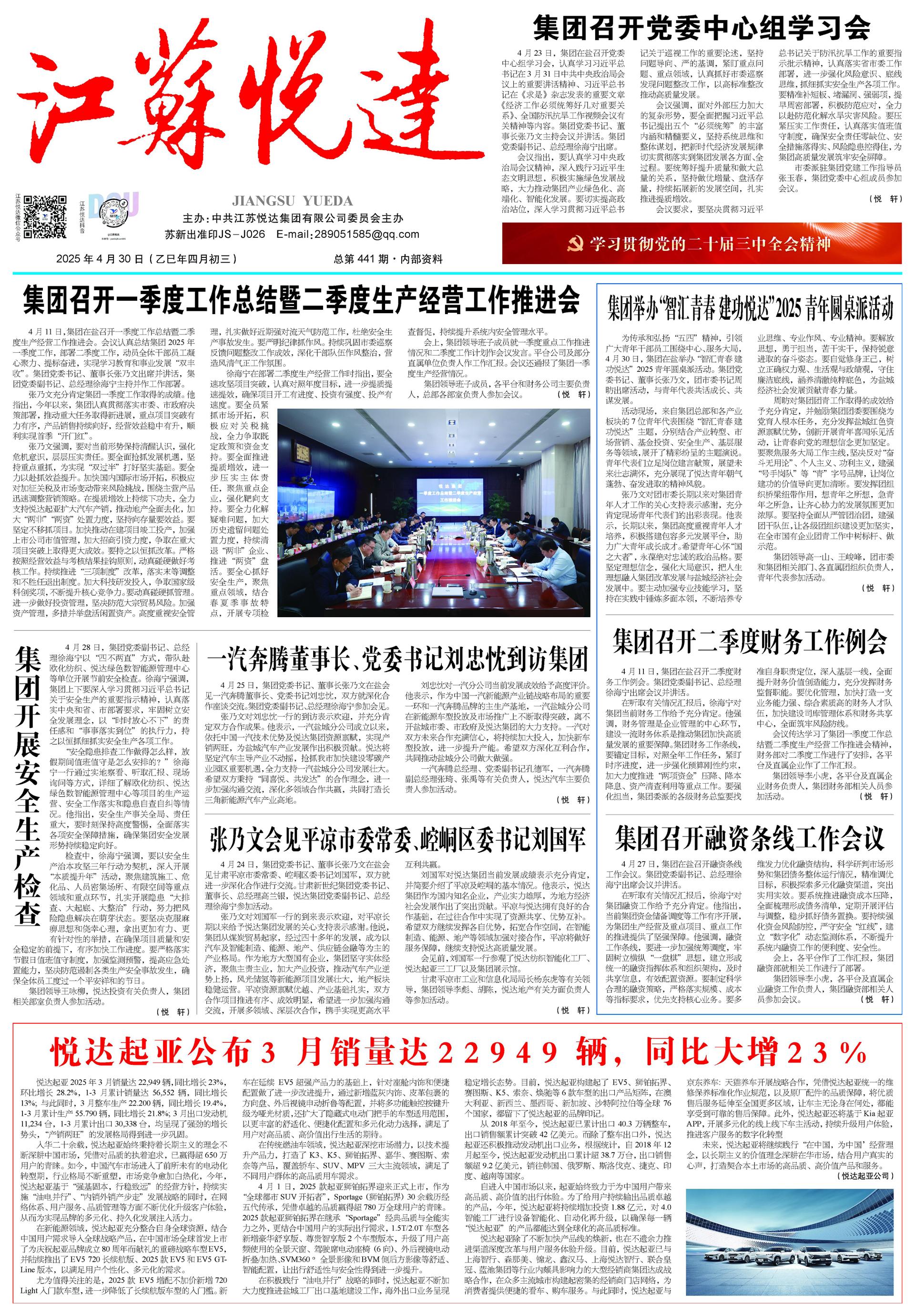 4月9日,集团在盐召开一季度工作总结暨二季度生产经营工作推进会。会议认真总结一季度各项工作,深入研判当前经济形势,动员全体干部员工进一步提振状态,紧盯季度目标,攻坚重点难点,确保顺利实现“双过半”。集团党委书记、董事长张乃文主持会议并讲话。张乃文指出,盘点成绩要“实”,既要肯定成绩,更要正视问题。今年以来,面对复杂多变的外部环境和日趋激烈的行业竞争,集团坚决贯彻市委、市政府决策部署,主要指标稳中有升,主导产业运行平稳,项目推进有力有序,国际市场取得成效,成功实现首季“开门红”。张乃文强调 ...