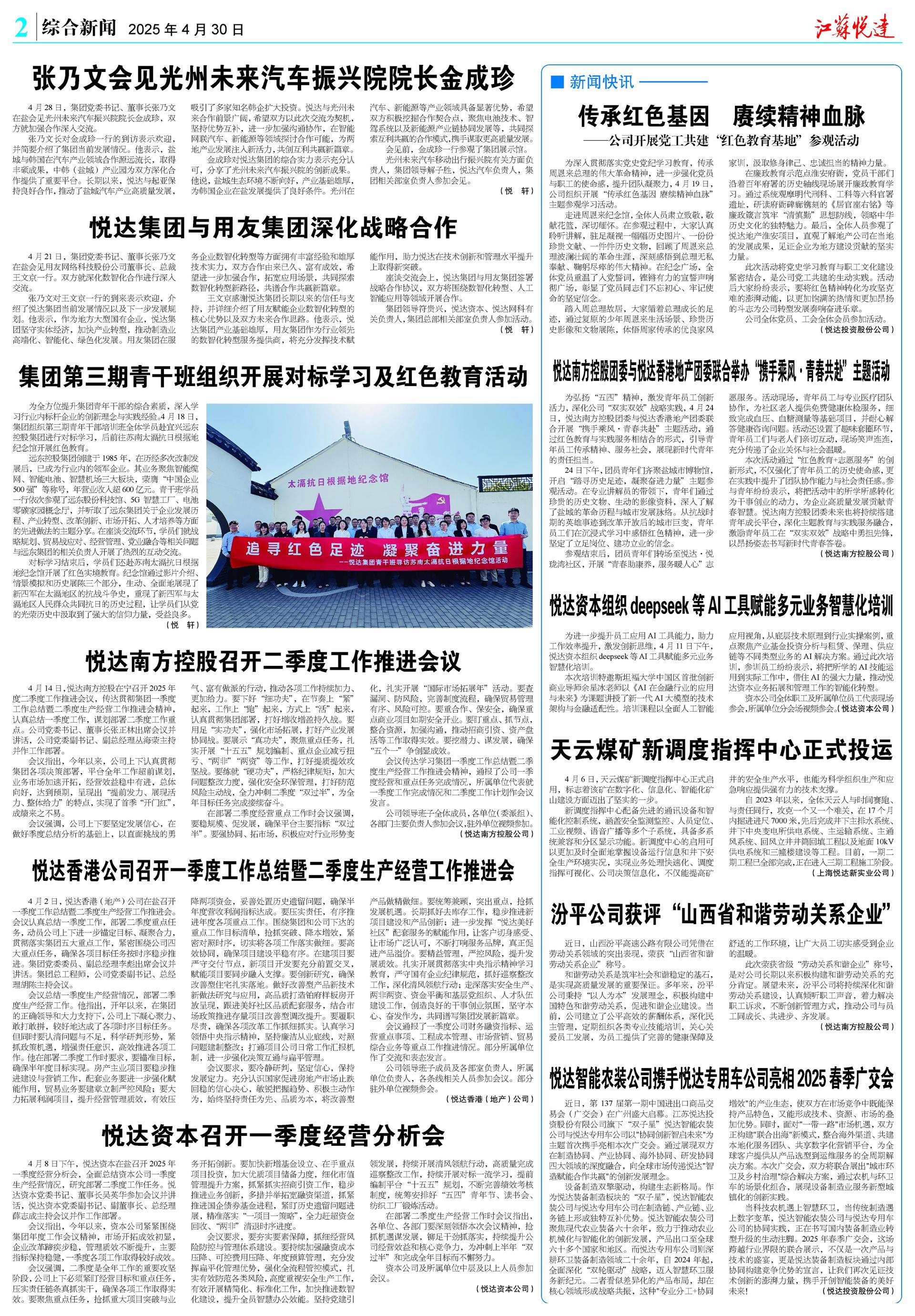 • ·  悦达投资以“两新一智”战略书写高质量发展答卷 2025-11-17